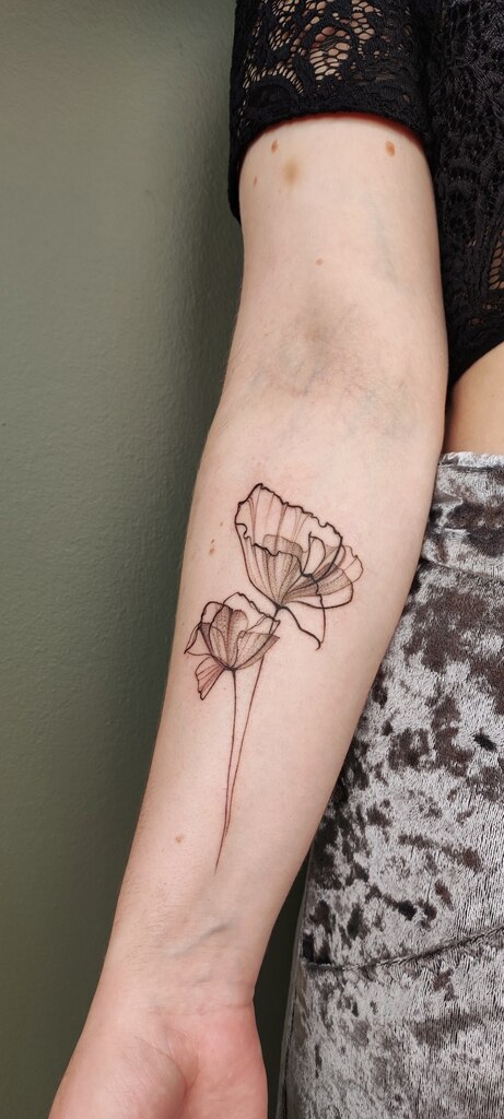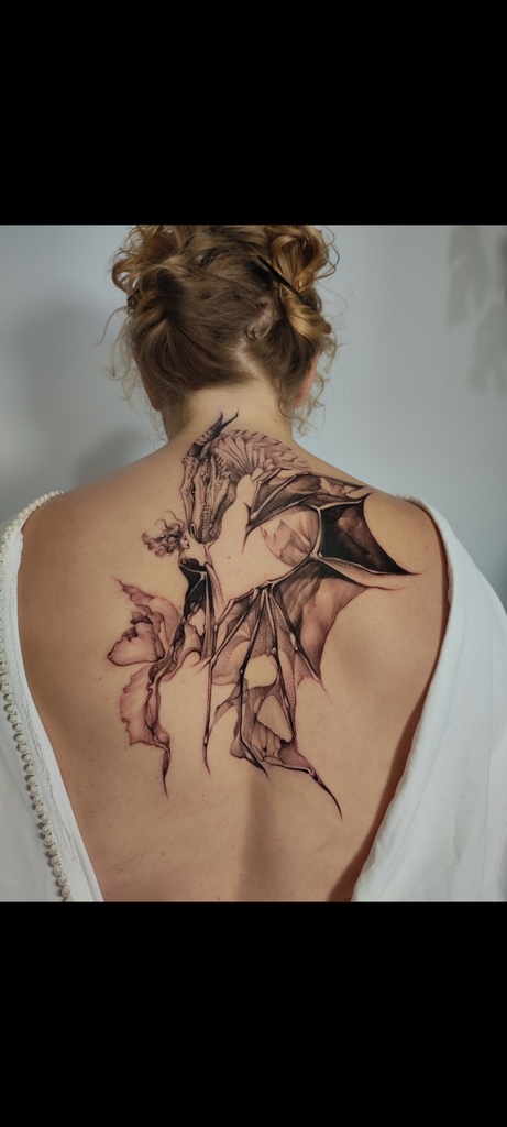 Mój styl zmieniał się dość mocno, w miarę jak zmieniałam się ja. Począwszy od realistycznych i cieniowanych, mrocznych motywów, przez graficzne, posadzone grubą igłą — właśnie taką rozpaloną — skończyłam na delikatnych, ażurowych, eterycznych motywach w szarości i kolorze. Pewnie niejeden psycholog miałby niezłą uciechę z postawienia diagnozy na mój temat. Zęby mam mocno popękane, ale wciąż jestem ciekawa, co będzie następne.