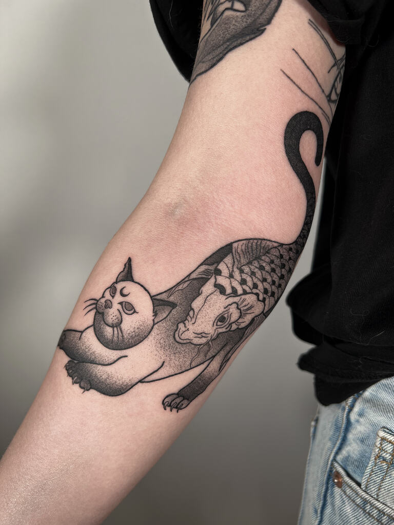 Tatuaż to dla mnie pewnego rodzaju terapia, proces autokreacji. Zawsze byłem towarzyską osobą, a moje zainteresowania wirowały w obrębie sztuki wizualnej – dlatego dobrze odnalazłem się w świecie tatuażu, zaczynając moją podróż w 2020r. Fascynuje mnie kilka różnych od siebie styli dlatego zobaczycie w moim portfolio lekki mix: od Japonii, przez tatuaż graficzny po tribale i blackworki.