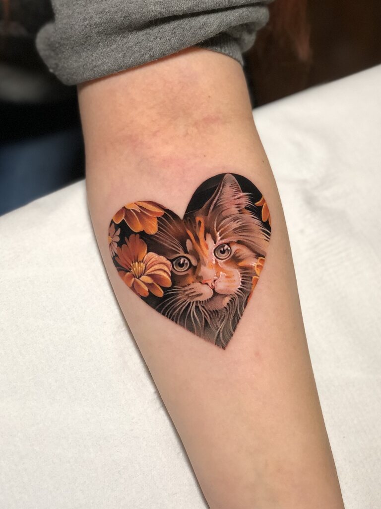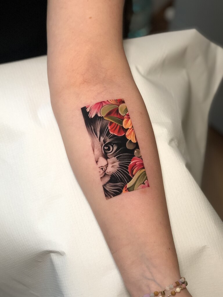Graficzny, realistyczny, tatuaż kolorowy
